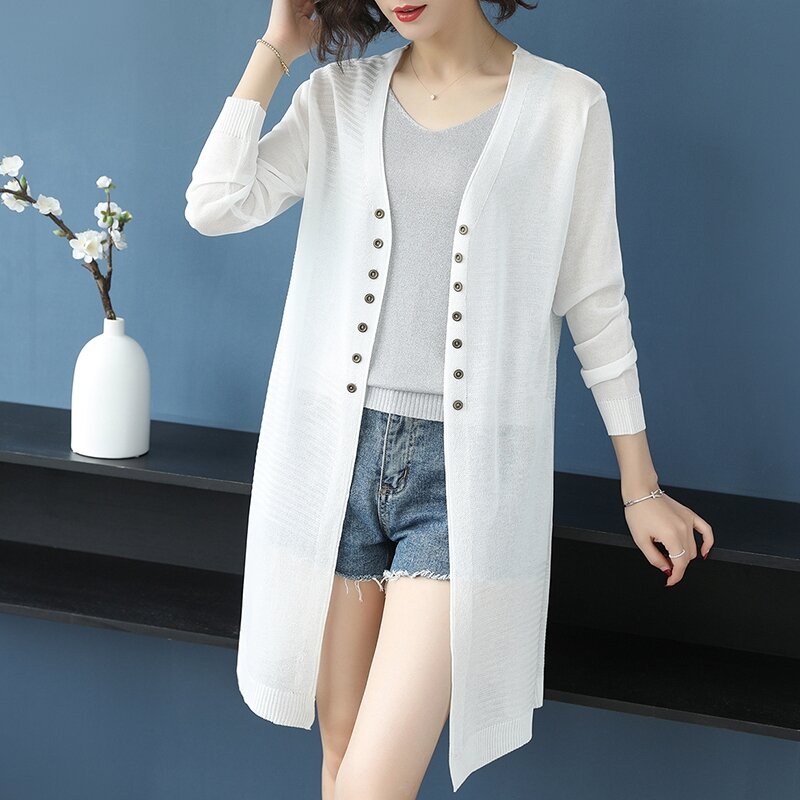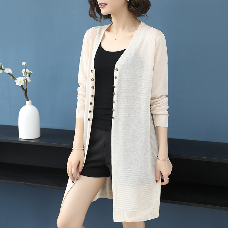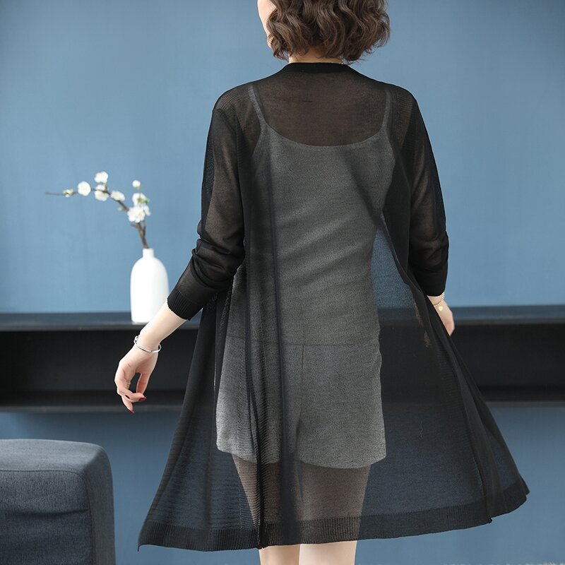 Summer Knitted Cardigan Women's Shawl Thin Shawl Outdoor Cloak Coat Mid-Length Sun Protection Clothing Ice Silk Airable Shirt