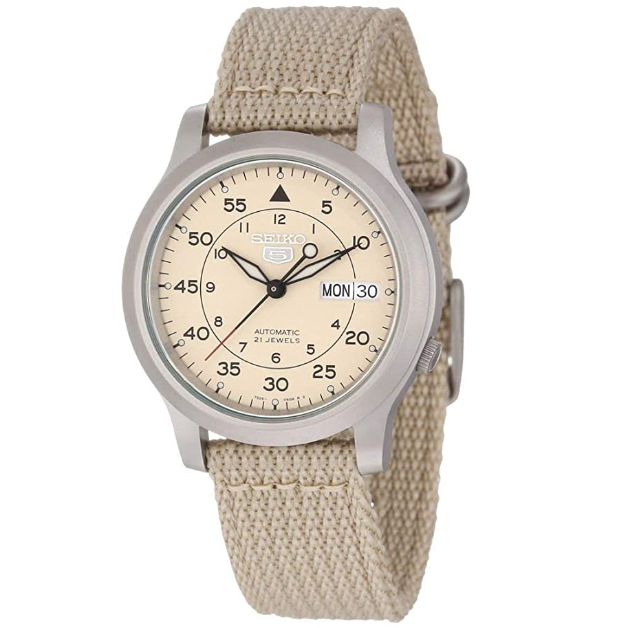 [Vinstore] Seiko 5 SNK803K2 Military Automatic Beige Nylon Strap Analog Men Watch SNK803 SNK803K