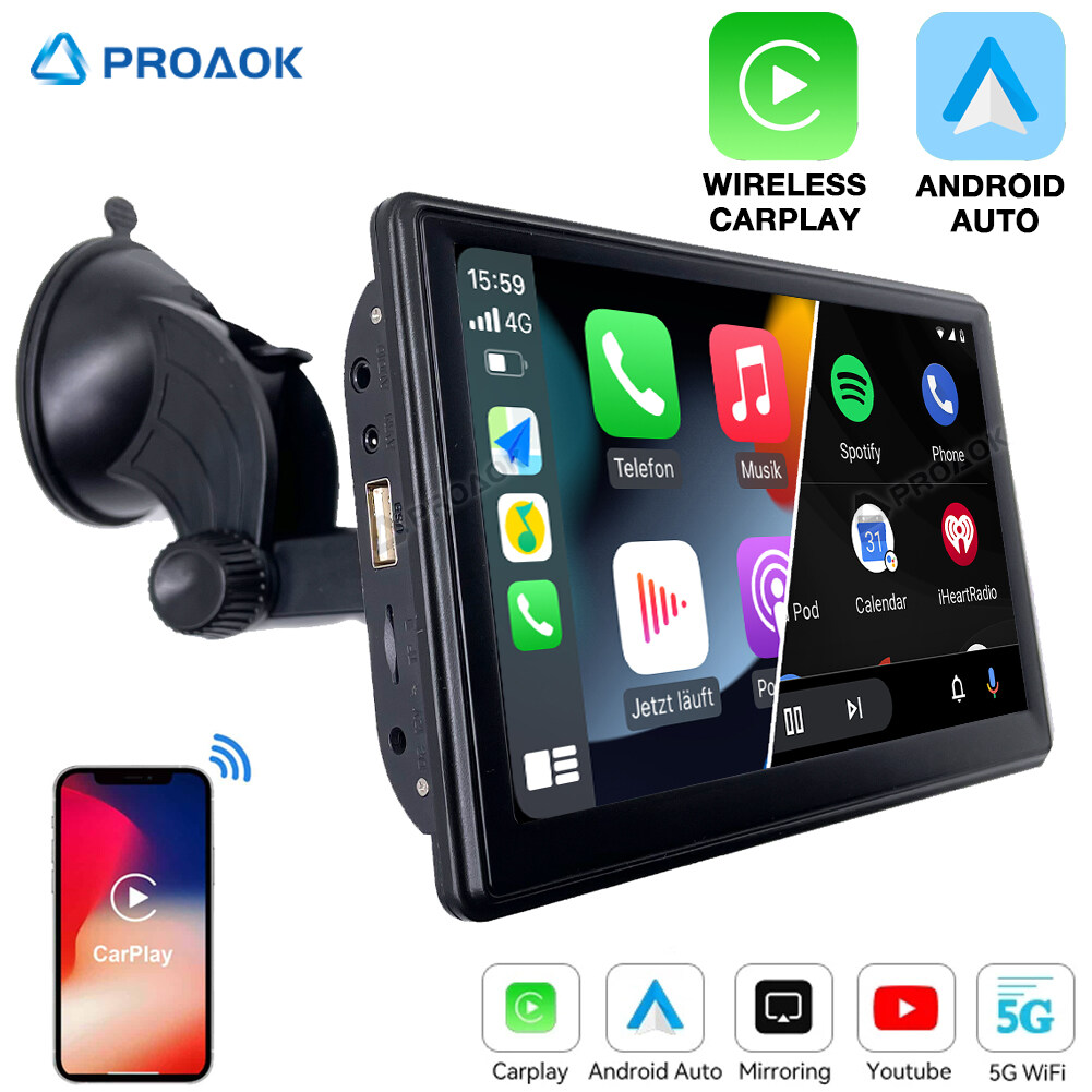 2022 Upgraded Wireless CarPlay Android Auto 7'' IPS Car Radio Portable Multimedia Player Stereo Touchscreen with Wireless Mirroring Mic, Bluetooth, FMT, USB MP4, Music for Universal Vehicle Quick Ins