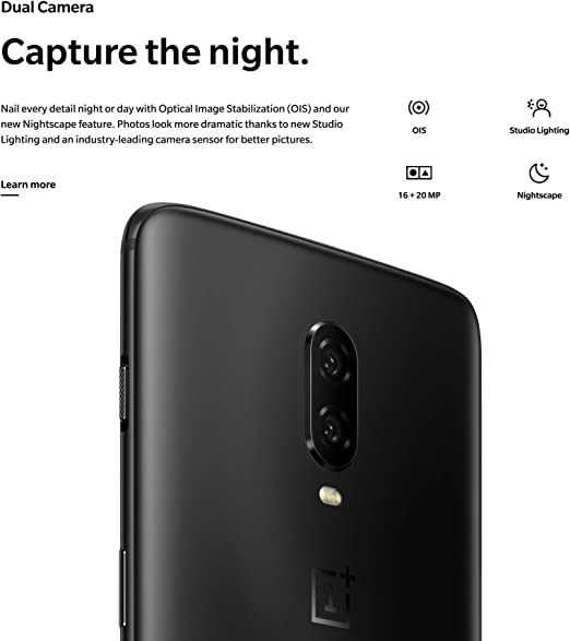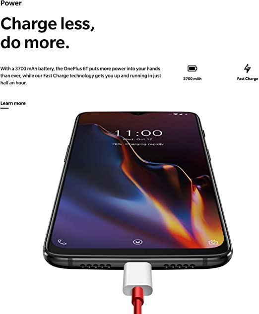 OnePlus 6T A6013 128GB Storage 8GB Memory Factory Unlocked 6.41 inch AMOLED Display Android 9 - Bright Black Global Version