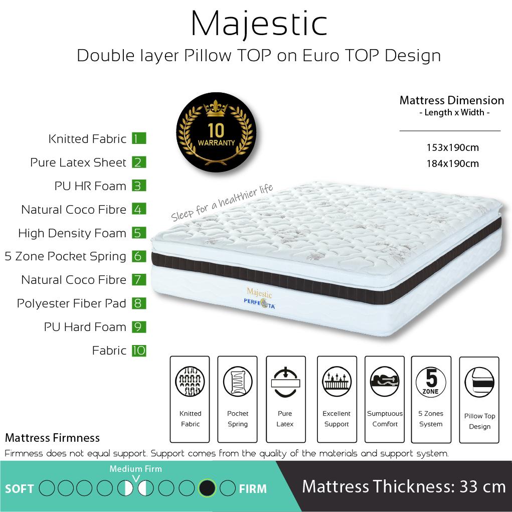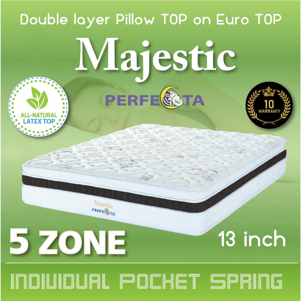 [Bulky] Queen Size - Perfecta Majestic Mattress * Double Layer Pillow TOP on Euro TOP Design * Natural Latex Top * 5 Zone Pocket Spring System