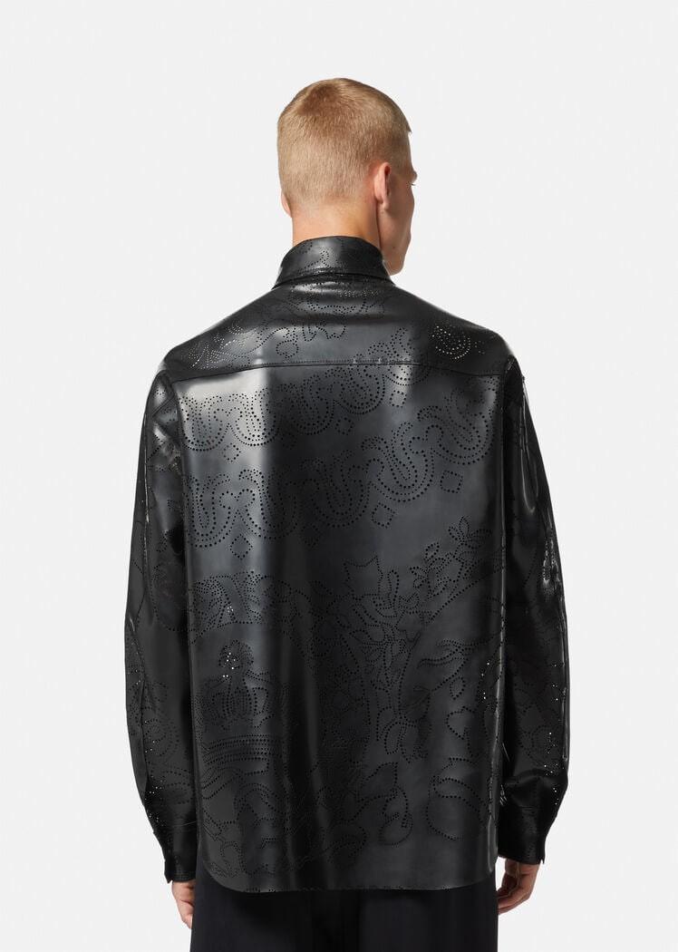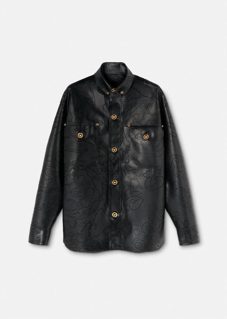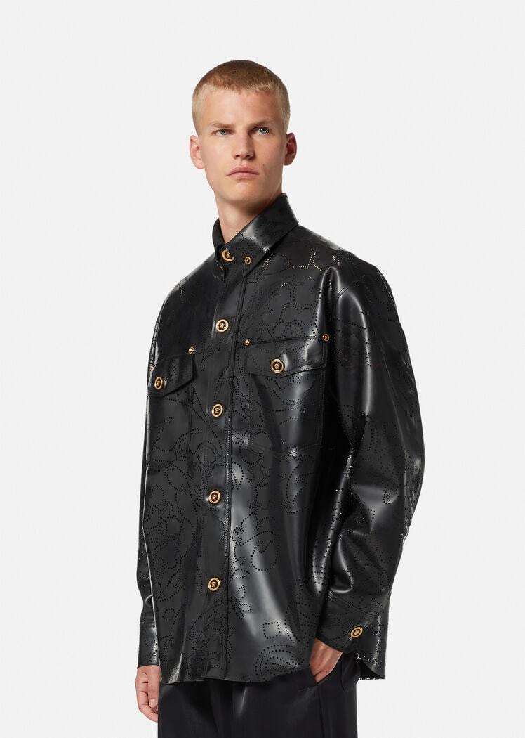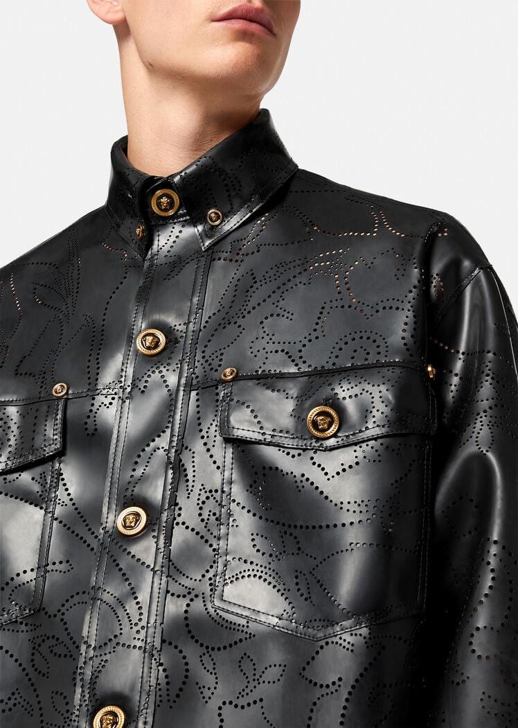 Heavyweight overshirt in genuine latex featuring a perforated Barocco graphic and enameled Medusa hardware.