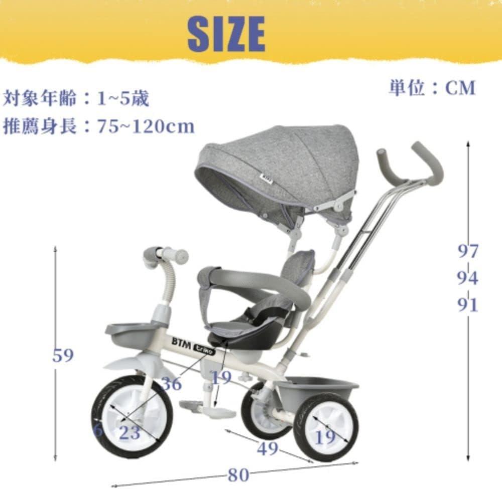 [Size] Assembly size 73*48*103CM Tire size Front wheel: 25cm Rear wheel: 21cm (diameter) Saddle height: 37CM