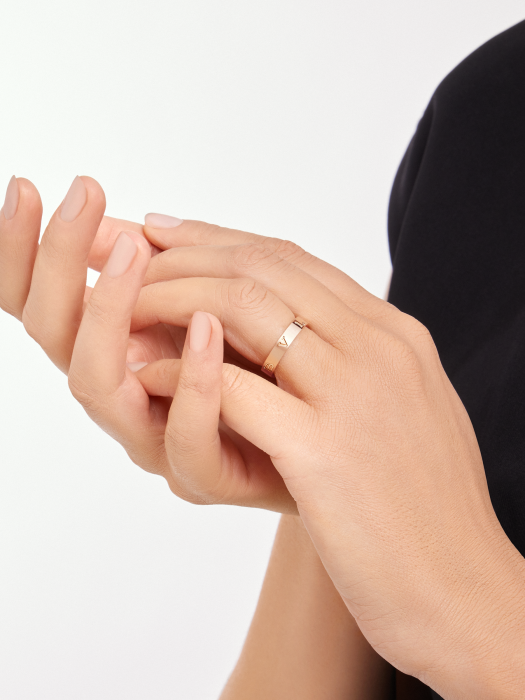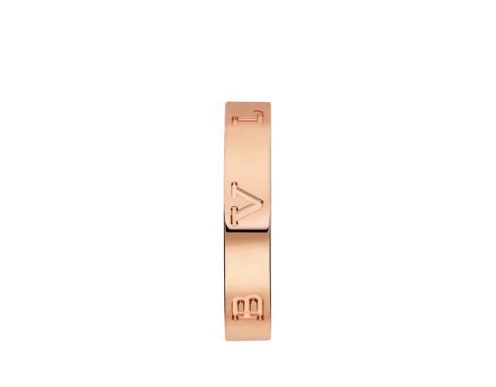 THE BULGARI BULGARI SERIES OF 18K ROSE GOLD RINGS IS ROOTED IN BULGARI'S ROMAN HISTORY, PRESENTING A MEANINGFUL BLEND OF CULTURE AND MODERNITY, SHOWING CONTEMPORARY ELEGANCE. THE LOGO OF THIS SERIES IS INSPIRED BY THE CURVED INSCRIPTIONS ON ANCIENT ROMAN COINS, AND HAS BEEN REINTERPRETED TO ACHIEVE A UNIQUE AND CLASSIC DESIGN ELEMENT. FASHIONABLE AND VERSATILE, THIS RING CAN BE MIXED AND MATCHED AS YOU LIKE.
