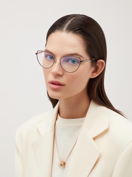 THE B.ZERO1 'ROCK' GLASSES FEATURE CAT-EYE METAL FRAMES AND BLUE-LIGHT BLOCKING LENSES. ROSE GOLD-TONE METAL STUDS, INSPIRED BY THE ICONIC B.ZERO1 ROCK JEWELLERY, COMPLEMENT THE LIGHT STRUCTURE FOR A UNIQUE STATEMENT. THE ANTI-BLUE LIGHT LENSES CAN BE REPLACED WITH MEDICAL LENSES IF NEEDED