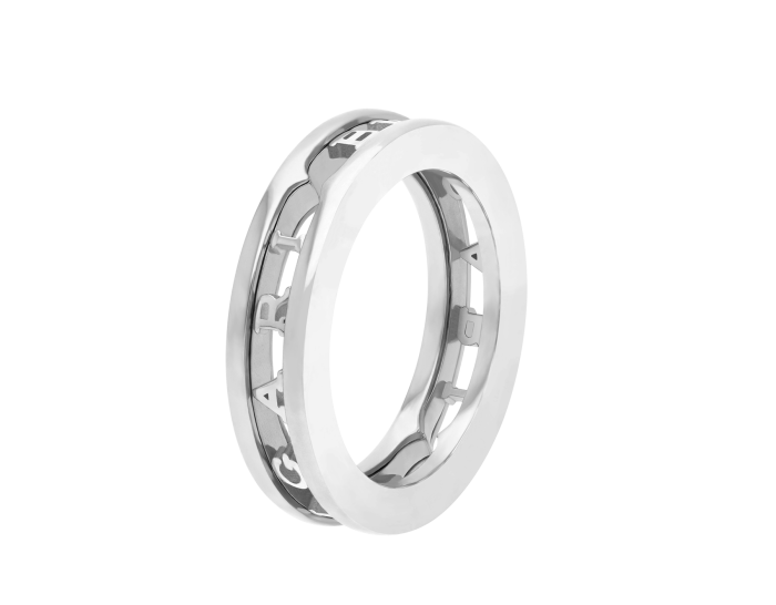 THE B.ZERO1 SERIES WHITE 18K GOLD SINGLE-RING RING DRAWS INSPIRATION FROM THE FAMOUS AMPHITHEATRE, THE COLOSSEUM, AND DEMONSTRATES BULGARI'S CREATIVE PERSPECTIVE IN A GROUNDBREAKING WAY. THE UNIQUE SPIRAL SHAPE IS REINTERPRETED IN A UNIQUE WAY, CHALLENGING THE ESSENCE OF JEWELRY AESTHETICS, EMBELLISHED WITH A STRIKING DESIGN ELEMENT-THE CLASSIC BULGARI BRAND LOGO.