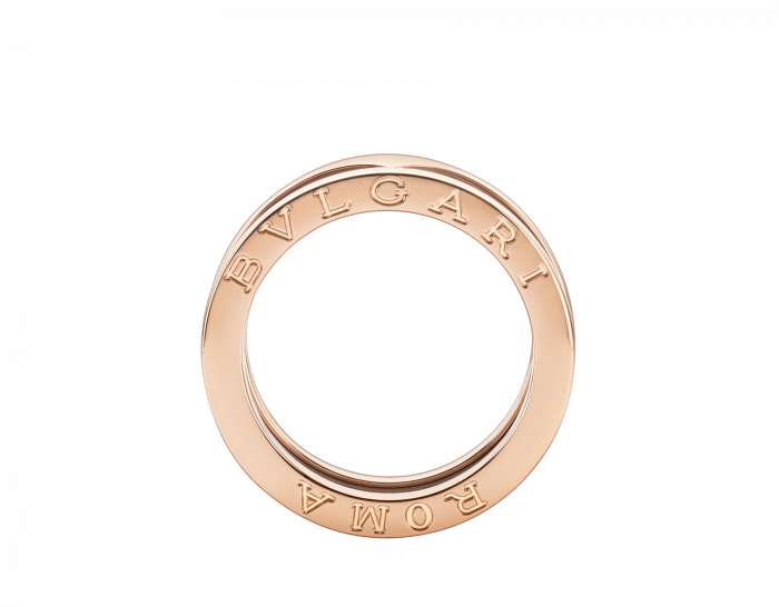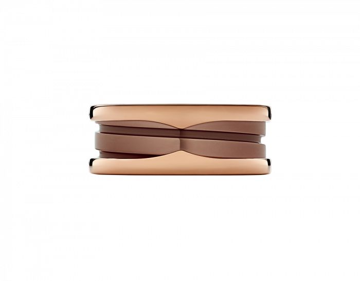DRAWING INSPIRATION FROM THE WORLD-FAMOUS AMPHITHEATRE, THE COLOSSEUM, THE B.ZERO1 RING TRULY DEMONSTRATES BULGARI'S CREATIVE VISION AND CHALLENGES THE VERY ESSENCE OF JEWELRY DESIGN. ITS UNIQUE AND PURE SPIRAL SHAPE SYMBOLIZES THE HARMONY OF PAST, PRESENT AND FUTURE - WHICH IS REFLECTED IN THE SPLENDOR OF THE ETERNAL CITY - AND THE PIONEERING SPIRIT OF THE COLLECTION. B.ZERO1 DOUBLE BAND RING IN 18K ROSE GOLD AND CERMET.