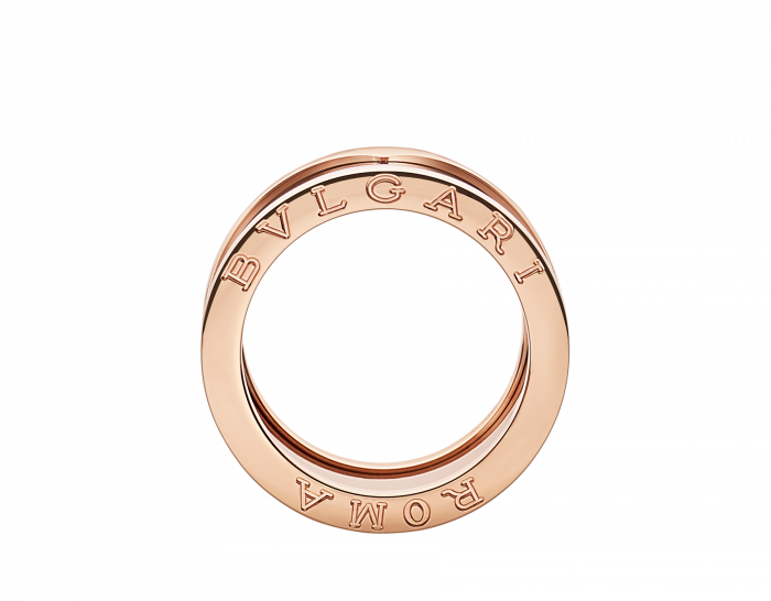 DRAWING INSPIRATION FROM THE WORLD-FAMOUS AMPHITHEATRE, THE COLOSSEUM, THE B.ZERO1 RING TRULY DEMONSTRATES BULGARI'S CREATIVE VISION AND CHALLENGES THE VERY ESSENCE OF JEWELRY DESIGN. ITS UNIQUE AND PURE SPIRAL SHAPE SYMBOLIZES THE HARMONY OF PAST, PRESENT AND FUTURE - WHICH IS REFLECTED IN THE SPLENDOR OF THE ETERNAL CITY - AND THE PIONEERING SPIRIT OF THE COLLECTION. B.ZERO1 FOUR-BAND RING IN 18K ROSE GOLD DECORATED WITH BRONZED CERAMIC.