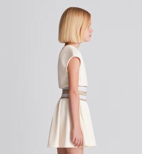 It is made of ivory cotton mixed to scratch the wool, and the undersex is marked with a gold Dior logo, and the waist is matched with a doll.