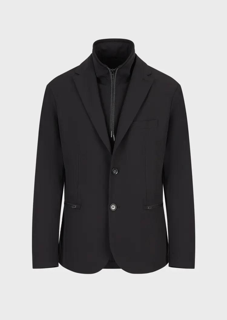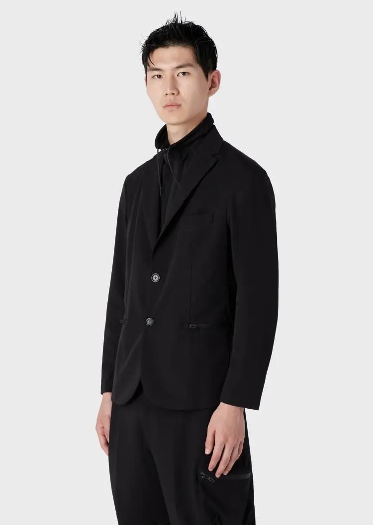 This EMPORIO ARMANI single-breasted blazer is crafted from breezy matte fabric for a comfortable, modern fit with a natural fit. A full-zip, detachable interior panel and heat-sealed zips at the side pockets enhance this piece's performance. Its identity and personality are defined by the concept of travel light, which characterizes most of the garments in this season's travel collection. Innovative cuts and fabrics bring a whole new dimension to dressing: easily paired with a variety of tops and accessories to create functional yet casual clothing for comfortable travel.