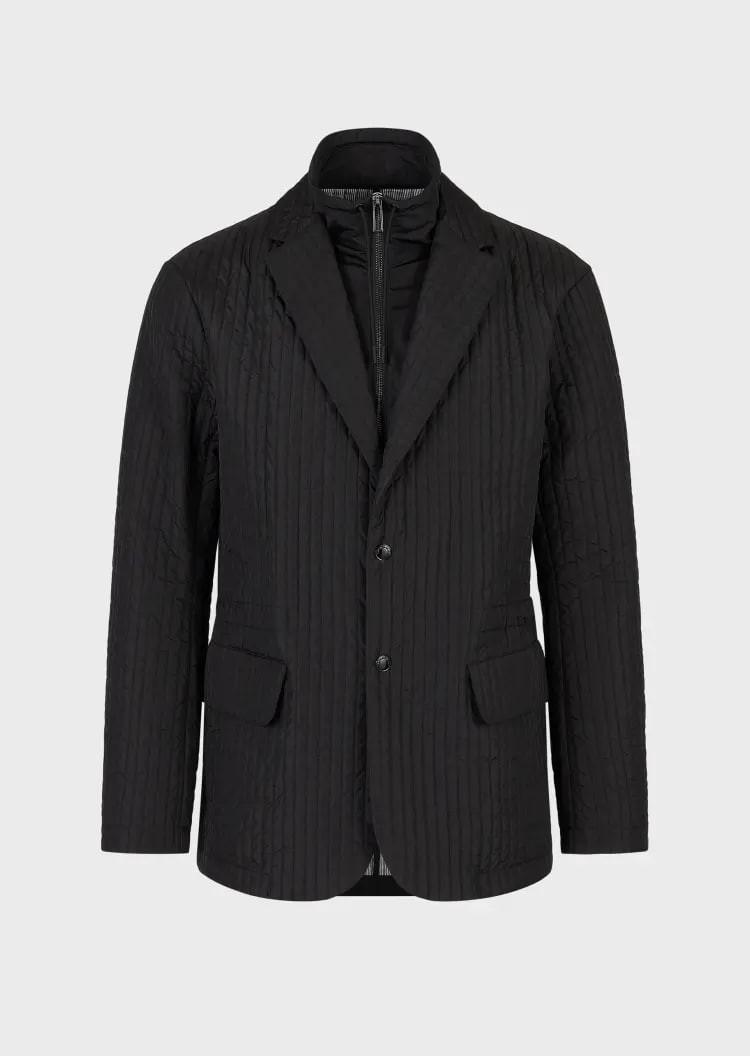 This EMPORIO ARMANI cotton jacket adopts a lapel suit version with double snap closures, a detachable full zipper inside, an adjustable collar and back waist with a drawstring, and a well-proportioned striped quilting design, which is more overall. Texture and workmanship. A dark outerwear made from sustainably engineered fabric that is weather-resistant and wearable, using less chemicals and therefore less waste.