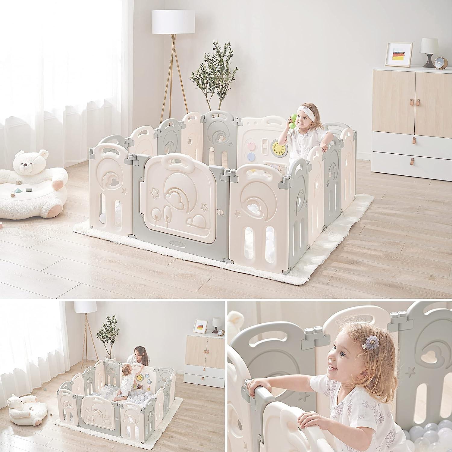 • SAFE & SECURE: 14 sturdy hinges connecting the panels together with non-slip pads keep them firmly in place; door panels that can be locked from the outside to keep children safe.