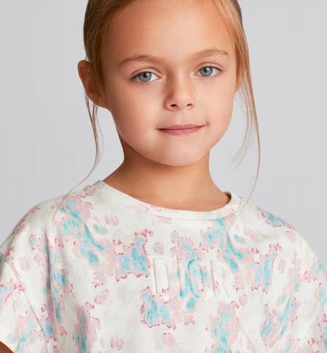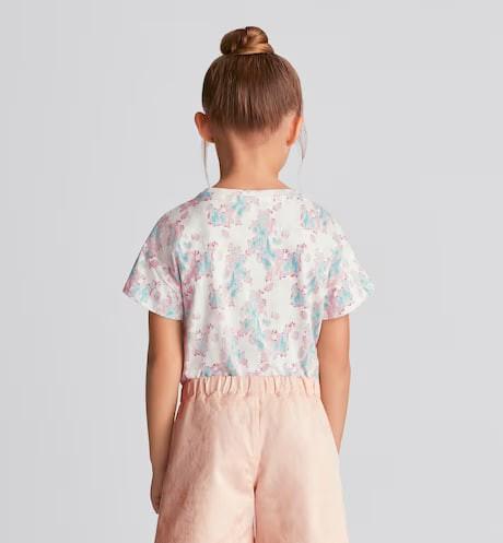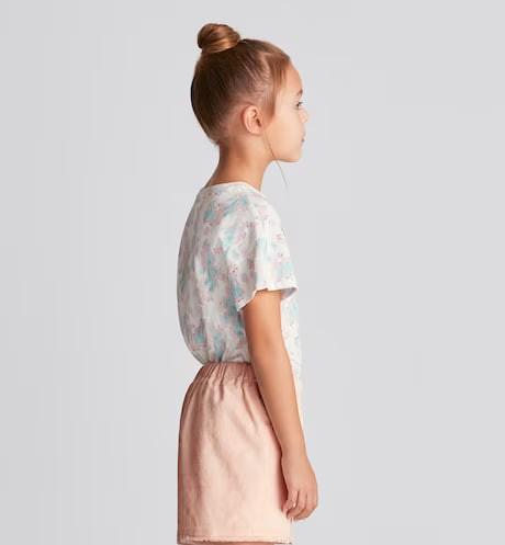 This T-shirt has a floral printing theme, with soft pink and pink colors.