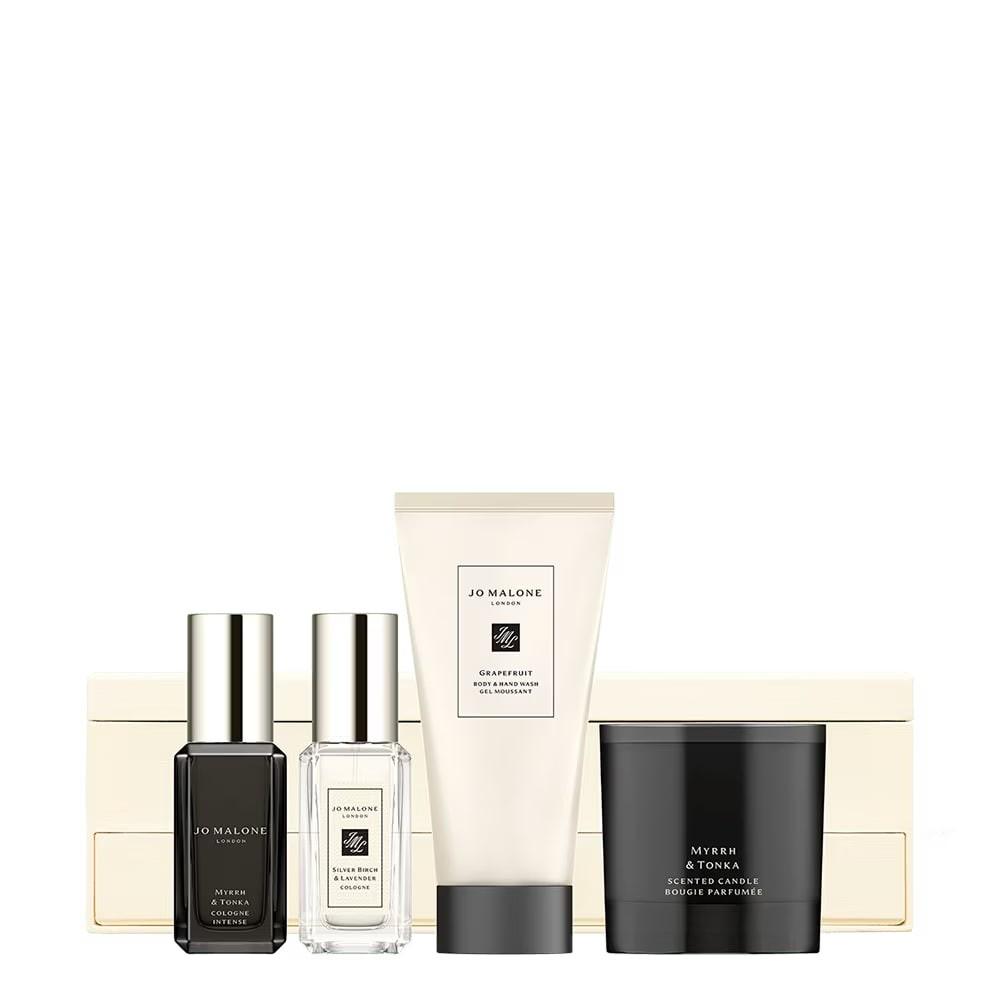 A selection from our men’s edit, including 9ml colognes, bath & body scents and two miniature candles.