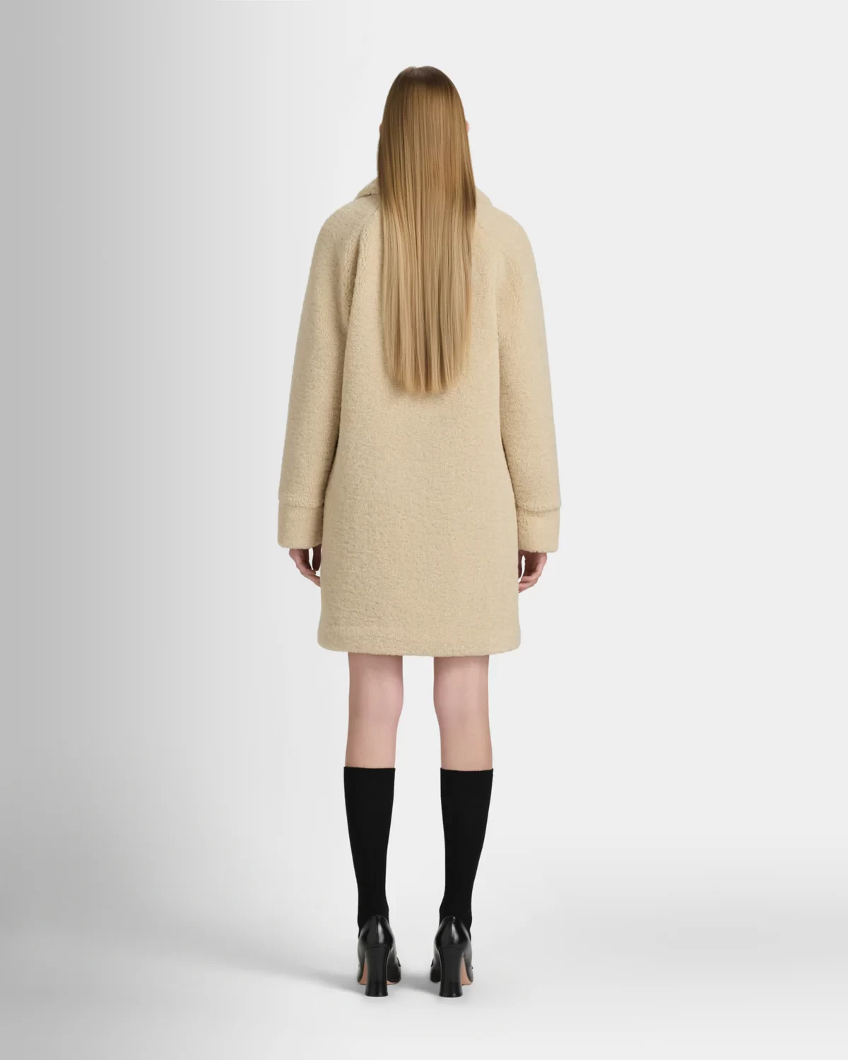 • 2 side pockets, brown horn-like buttons, internal lining, v-neck