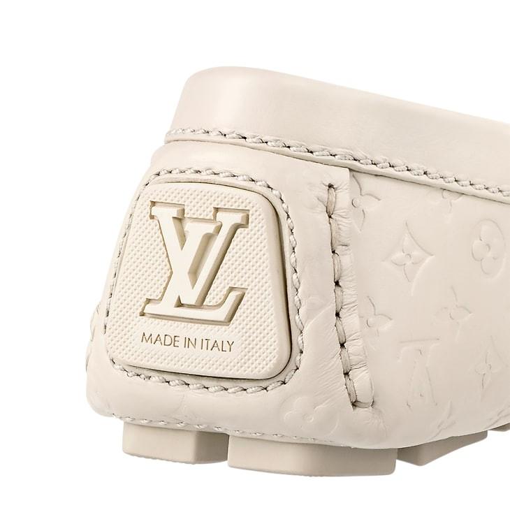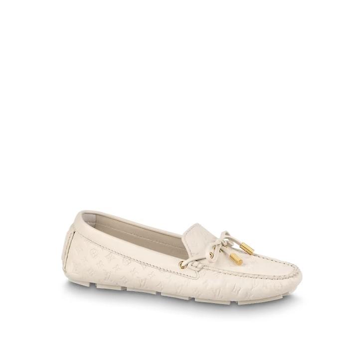 One of Louis Vuitton's classic styles, the Gloria flat loafer is crafted from supple calf leather debossed with the Monogram pattern. This car shoe is characterized by its authentic moccasin construction with a hand-stitched vamp. It is finished with an extremely flexible rubber-pad outsole and refined details, including engraved, gold-tone lace tips.