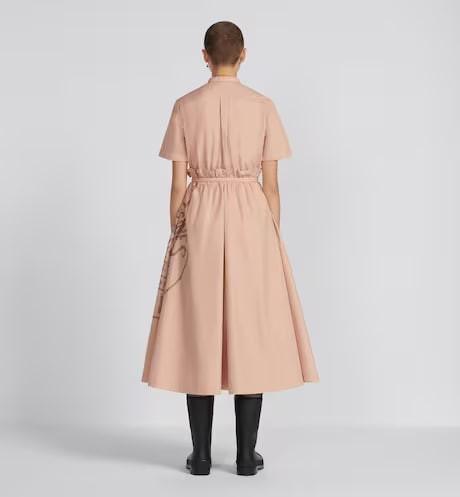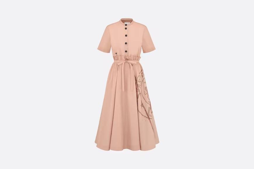 The face of this open-ended dress is based on the theme of L'Union Fait la Force, designed to design linen handbags from the workshop, and echoes the spirit of cooperation that Maria Grazia Chiuri attaches great importance to. It is made of pink cotton and mansion, designed with pleats, and the waistlines and pleats of the protruding waist make the cutting of the horn more elegant. This skirt can be built into the short style of this season, creating an elegant and modern charm.