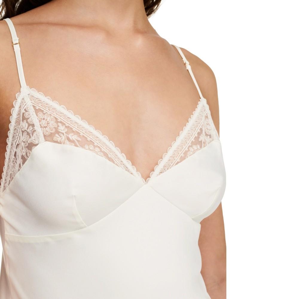 Embroidered mesh on the chest shows a romantic style