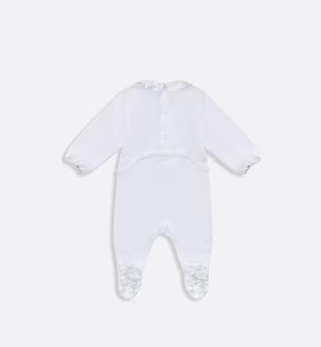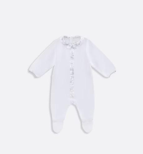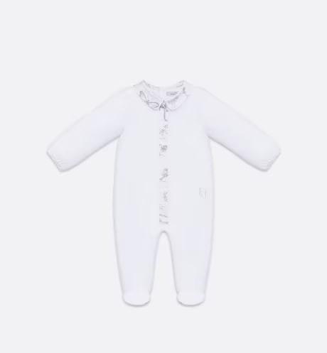 Made of white cotton, this suit includes pajamas, hats and mouths, and is pierced with Dior Oblique.