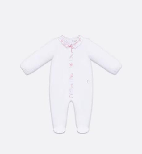 Made of white cotton, this suit includes pajamas, hats and mouths, and is pierced with Dior Oblique.