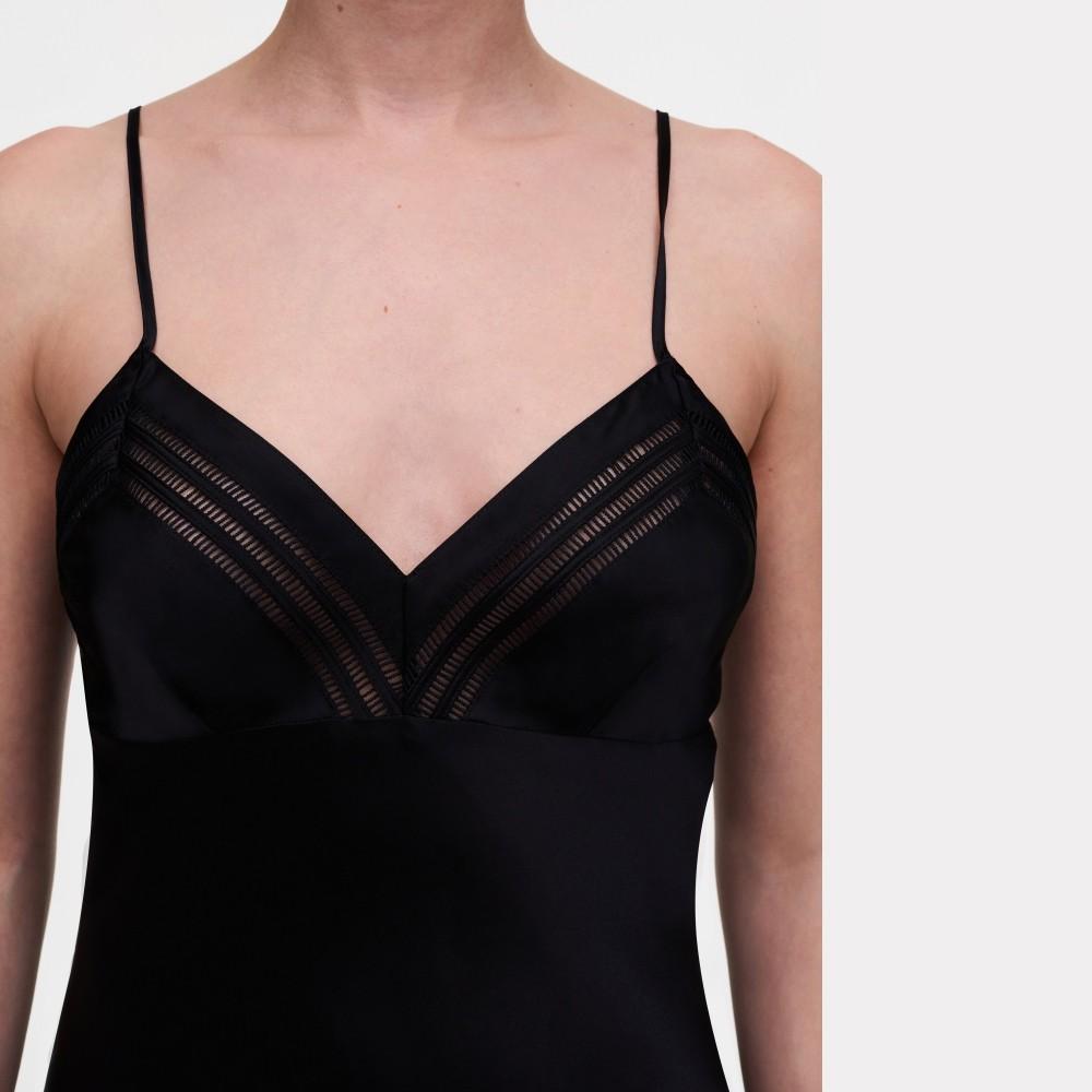 The A-line tailoring of the Nightshade series shows the sweetness and femininity. The top luxurious silk touch makes people fascinated. The delicate shoulder straps highlight the delicate and fragrant shoulders. The tie on the back of the shirt is the highlight of the whole outfit. Make women beautiful no matter day or night.
