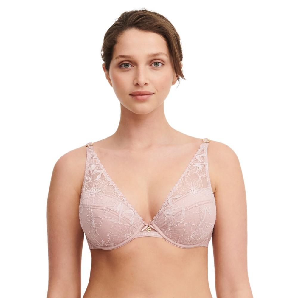 • Low-ridged inverted triangle neckline Concentrated cut Leavers lace cups for eye-catching effect