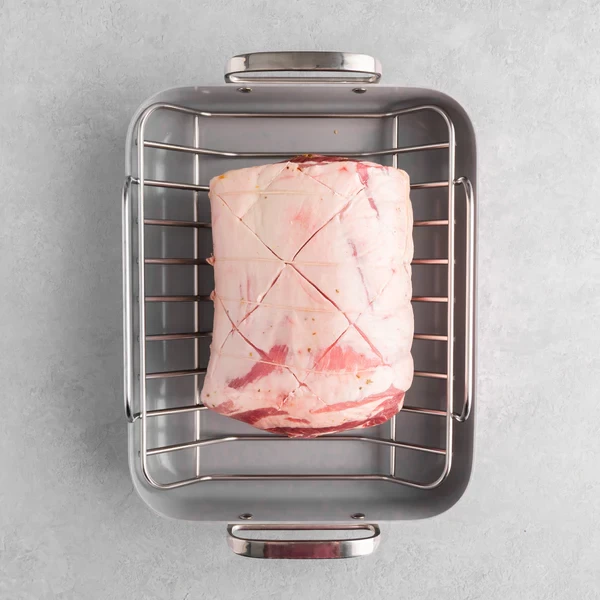 Porchetta is a traditional Italian roast of herb seasoned pork that is juicy in the center with a crisp fat cap on the outside. We make ours from a 100% Kurobuta boneless pork belly for a rich exterior and finely marbled interior. A layer of seasoning and spices is sprinkled on by hand before the beautiful roast is rolled and tied with twine.
