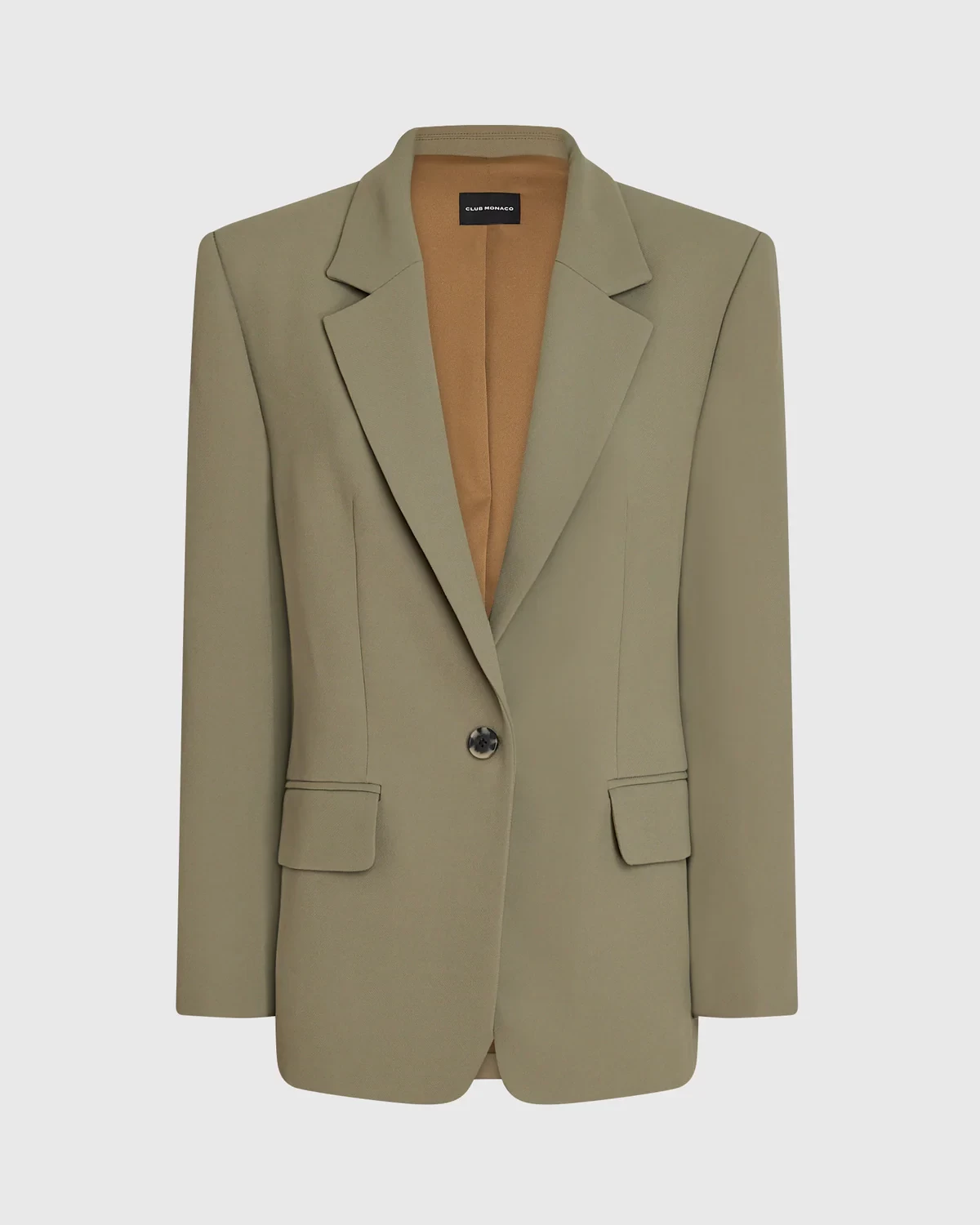 Relaxed Single-Breasted Crepe Blazer (Size: XL Olive Pit)