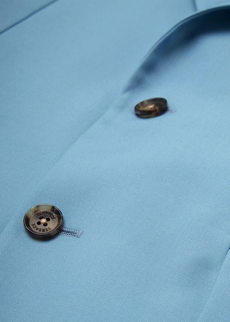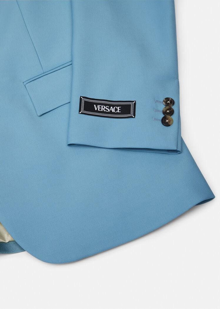 Single-breasted wool blazer with a silk Seashell Baroque Polka Dot print inlay on the back.