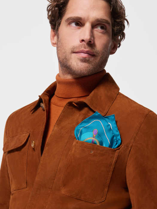 THE SERPENTI 75 SERIES LIGHT BLUE DELICATE PRINTED TWILL SILK POCKET SQUARE PAYS TRIBUTE TO THE 75TH ANNIVERSARY OF THE BULGARI CLASSIC SERIES THAT SYMBOLIZES ENDLESS TRANSFORMATION. THE PRECIOUS SNAKES ARE INTERTWINED AND INTERTWINED, WINDING AROUND THE ICONIC SERPENTINE CHAIN OF BULGARI BULGARI LEATHER WORKS-THIS PATTERN CLEVERLY INTERPRETS THE CREATIVE CHARM AND FASCINATING TRANSFORMATION OF THE SERIES FOR 75 YEARS. SMART AND TIMELESS, THIS ACCESSORY ADDS A TOUCH OF COLOR AND SOPHISTICATION TO ANY LOOK. 30 X 30 CM - 13 X 13 INCHES. 100% SILK TWILL. HANDMADE IN ITAL