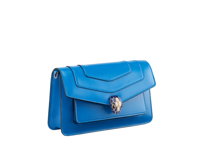 THE SMALL SERPENTI FOREVER EAST-WEST SHOULDER BAG IS MADE OF MEDITERRANEAN LAPIS LAZULI BLUE CALF LEATHER, AND INTERPRETS THE TIMELESS CLASSIC STYLE WITH A FASHIONABLE AND AVANT-GARDE SHAPE. FITTED WITH A FUNCTIONAL LEATHER SHOULDER STRAP, IT IS FINISHED WITH THE ICONIC SNAKEHEAD MAGNETIC CLOSURE, WHOSE SEDUCTIVE SCALES AND DESIGN ARE INSPIRED BY THE SERPENTI JEWELRY COLLECTION OF THE 1960S, MAKING IT SUITABLE FOR EVERYDAY WEAR. FEATURING ONE SINGLE COMPARTMENT, ONE FRONT POCKET, ONE BACK PANEL POCKET, ONE INTERNAL BONE POCKET, THREE CARD SLOTS, ONE CUSTOMIZABLE VANITY MIRROR AND BULGARI METAL LOGO ON THE BACK. 22 X 13 X 5.5 CM - 8.7 X 5.1 X 0.7 INCHES. MADE IN ITALY.