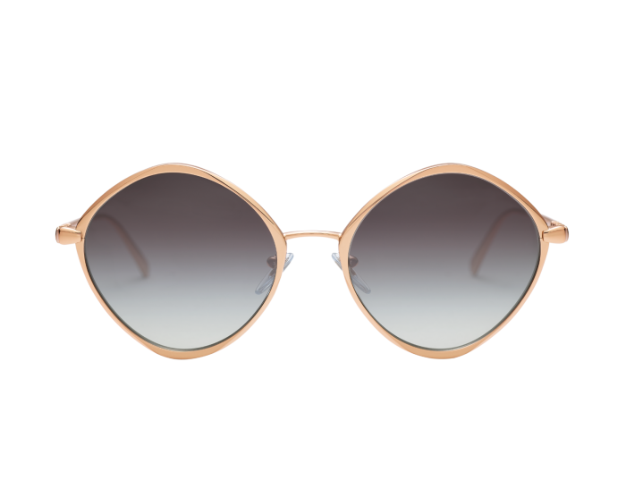 SERPENTI 'VIPER' SUNGLASSES IN ANGULAR GOLD PLATED FRAME WITH GRAY LENSES AND JEWELED SCALES ON THE TEMPLES