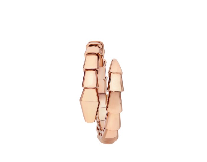 THE SERPENTI VIPER SERIES 18K ROSE GOLD RING INTERPRETS THE ENDLESS TRANSFORMATION AND CHANGE OF BULGARI'S CLASSIC WORKS IN AN ULTRA-MODERN WAY. THE CHARMING DESIGN SHOWS SIMPLICITY AND SENSUAL LAZINESS. THE RING COMBINES GRACEFUL SHAPE AND GEOMETRIC STYLE, LINGERING ON THE FINGER, AND THE DELICATE SCALES SHINE WITH LUSTER.