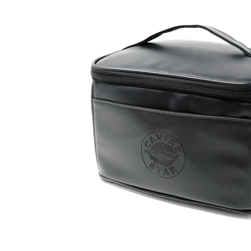 Caviar Star World Star Party Bag includes FOUR x 4oz jars of our most popular imported caviars from around the World plus the necessary accompaniments, all packaged in a sleek, double-insulated, reusable caviar cooler bag.