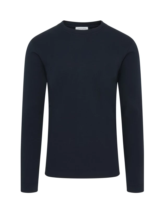 Zattura High Collar Long Sleeve Supima Cotton T-Shirt (Navy)